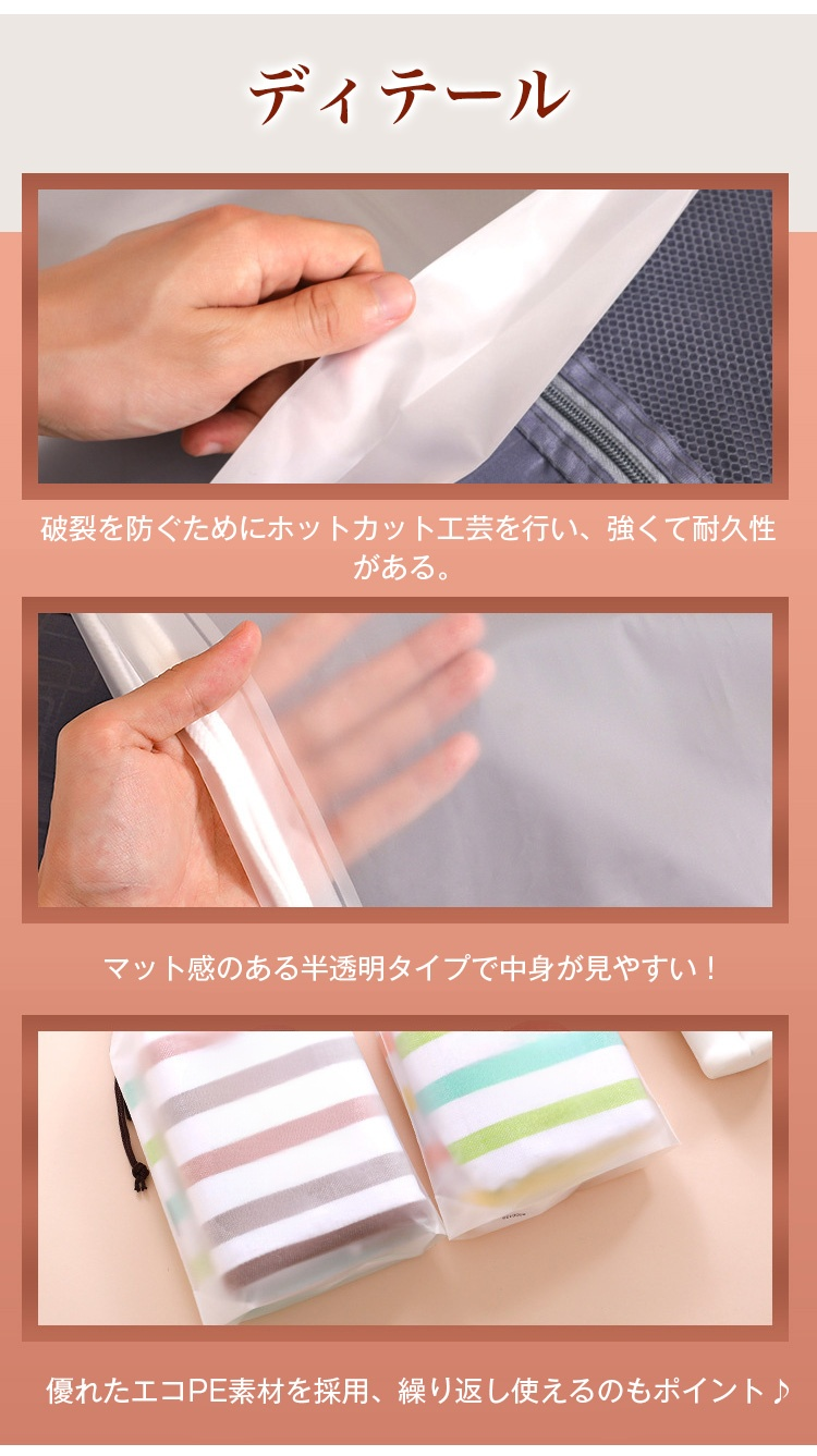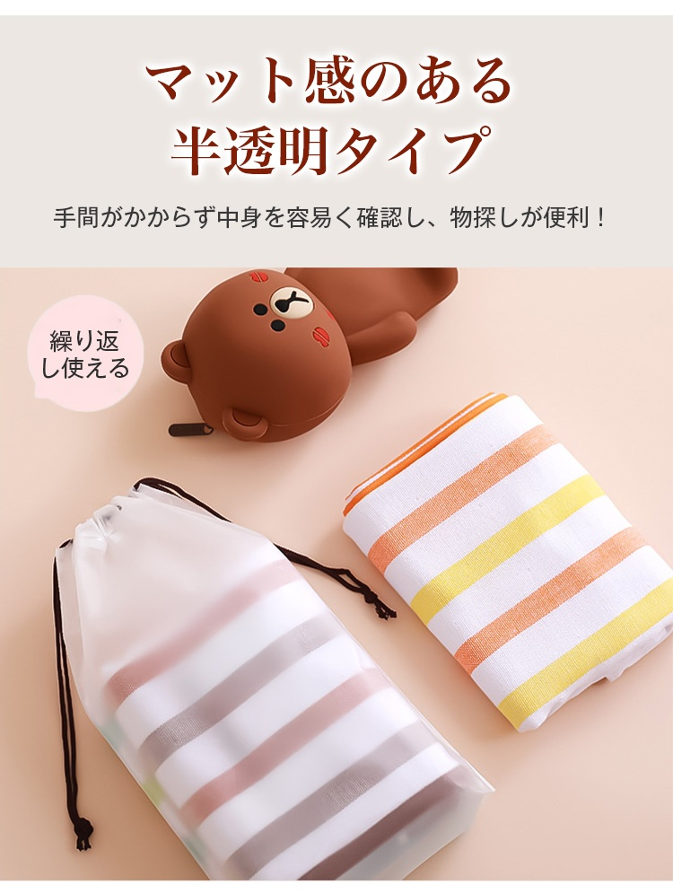 【収納ポーチ】ルームウェアの保管、持ち運びに最適な巾着タイプの収納ポーチ!